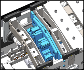 1. Open the sliding guard (Outfeed end) and locate the dimple tool between the pinch rollers and the flange overform rollers.