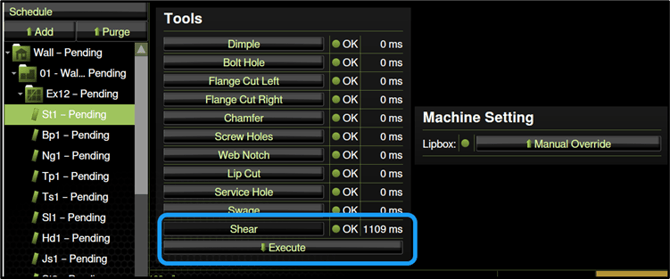 Inch strip to Outfeed and manually shear