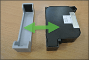 NOTE! If a cartridge is new or from long-term storage, remove its protective film. FRAMECAD recommends storing protective films for reuse. - Open the sliding cover (Outfeed end) and locate the printer heads.