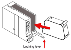 - Gently lift and press the locking lever to snap the cartridge into place.