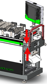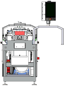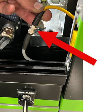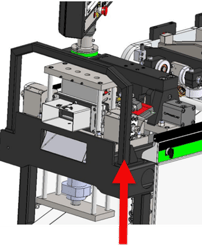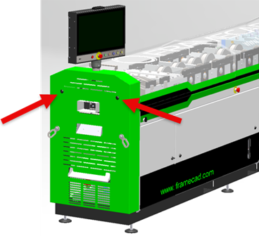 5. Swing the Operator touchscreen back in place, insert and tight the mounting bolts, close the Outfeed end cover, and reconnect the sliding guard safety switch cable.Reset the tool count