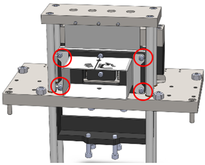 1. Use the 10mm hex key to loosen the four shear assembly clamp bolts (Outfeed end). Do not remove the clamp bolts yet.