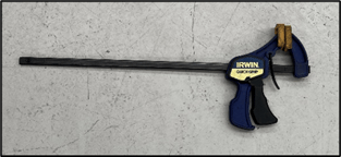 Note – tools required: clamp, cutting tool (shears, electric nibbler), decoiler winder handle (stored on decoiler), strap, ratchet.