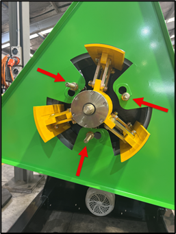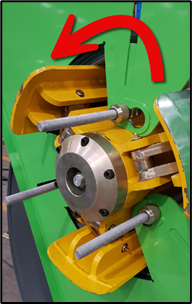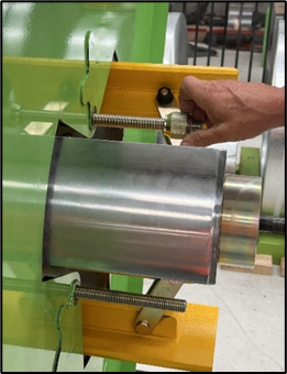 1. Rotate the decoiler mandrel until the backplate's flat side and cut-out face up.