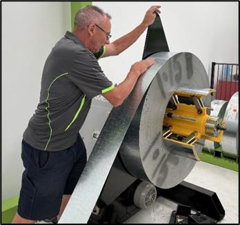 Operators must remove a coil when it is used up or when the roll-former is set up with the wrong steel required for a job.