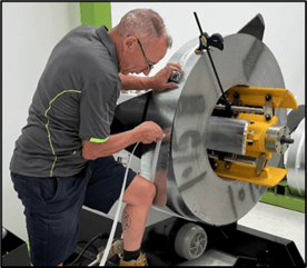 With the machine in an Emergency Stop state, and a clamp ready for strapping the steel:
