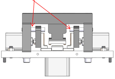 Spray white lithium grease or apply light grease to the guide rod for each of the two side dies.